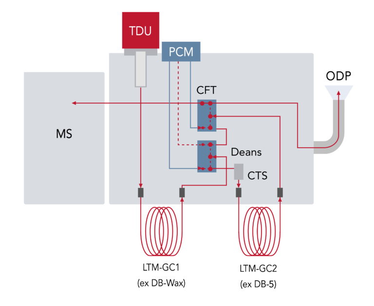 While ADA reveals which odorants are perceived at the highest dilutions, it alone does not provide definitive compound identification. Cannabis is a complex matrix, and many of its most potent compounds coelute in a single-dimensional separation. 1D/2D-GC-O/MS allows for automated switching between single-dimensional separation and heart-cutting into the second dimension when coelution is observed.